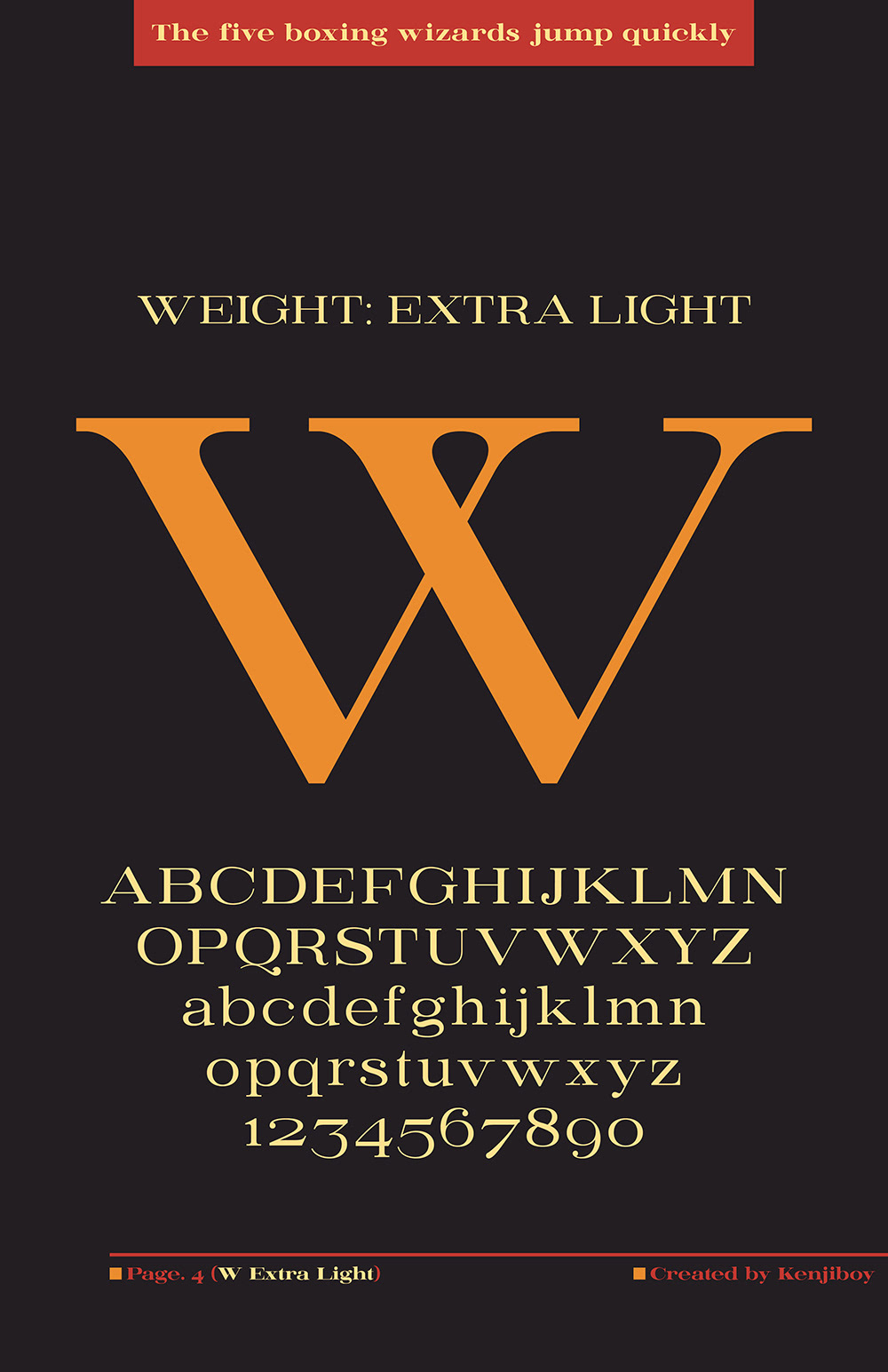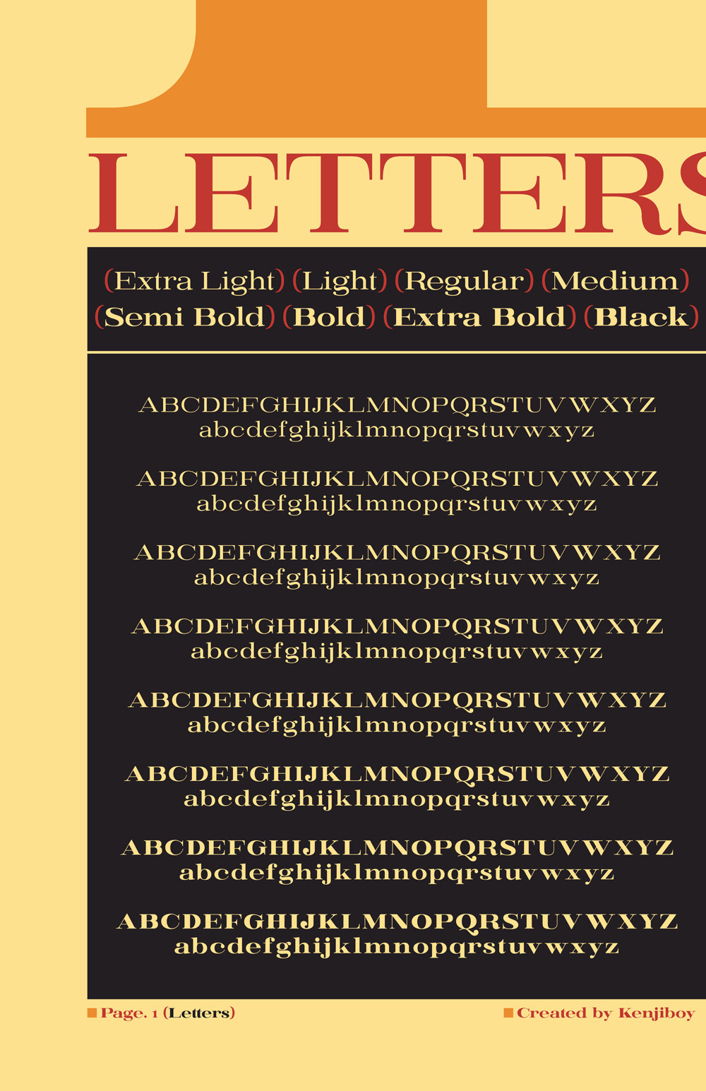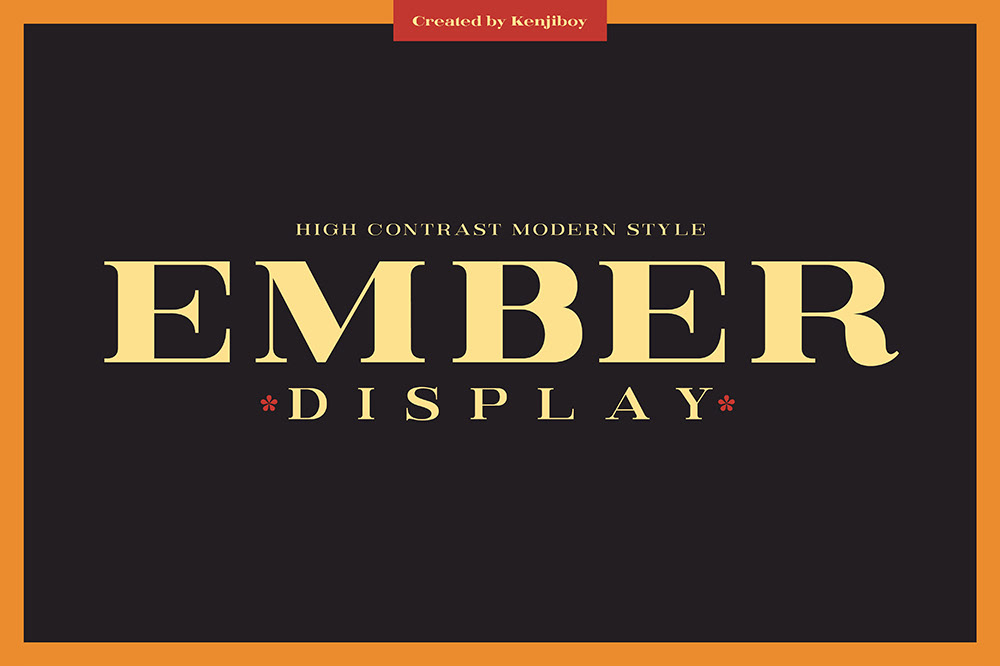 Ember is a high contrast modern style serif that comes in 8 weights, Uppercase, Lowercase with punctuation and some symbols.